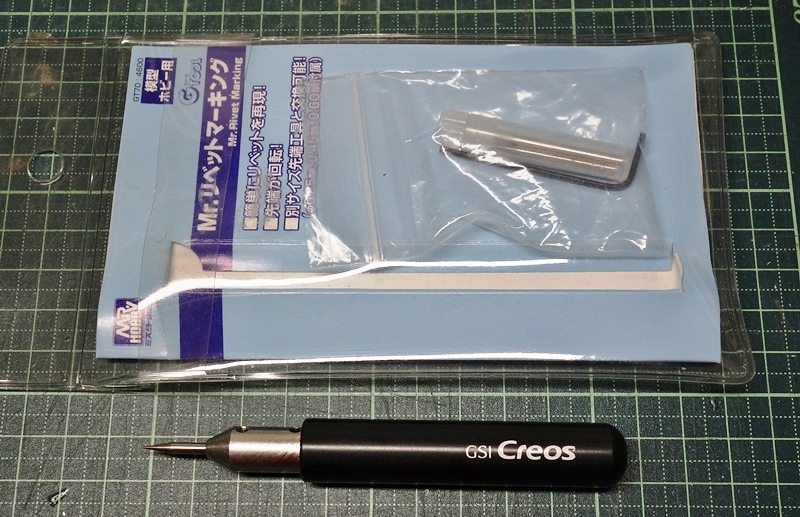 (注)リベットを打つのは、サーフェーサ塗装の状態で、すじ彫りに沿って行います。
