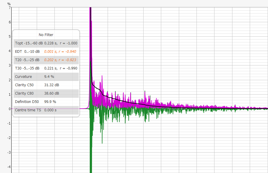 2.明瞭な音を求めるなら、音源の指向係数Qが高いスピーカーを使用。スピーカーの近くを絨毯などで吸音すると、STIの測定値がgood側に動きます。