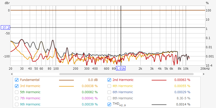 100Hz以下は、-60dBぐらいで、スピーカーの歪みを測定する程度なら、問題は無いのですが、アンプ測定には、性能不足です。