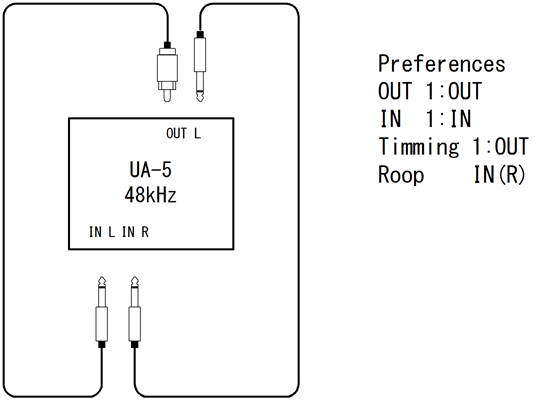 USBオーディオキャプチャ:UA-5を使用しましたが、今まで使用していた物が、マイナス電源側が破損し、使えなくなり、新たに中古を購入しました。新たに購入する場合は、ループバック機能が付いているM2やUR22C等を選択します。