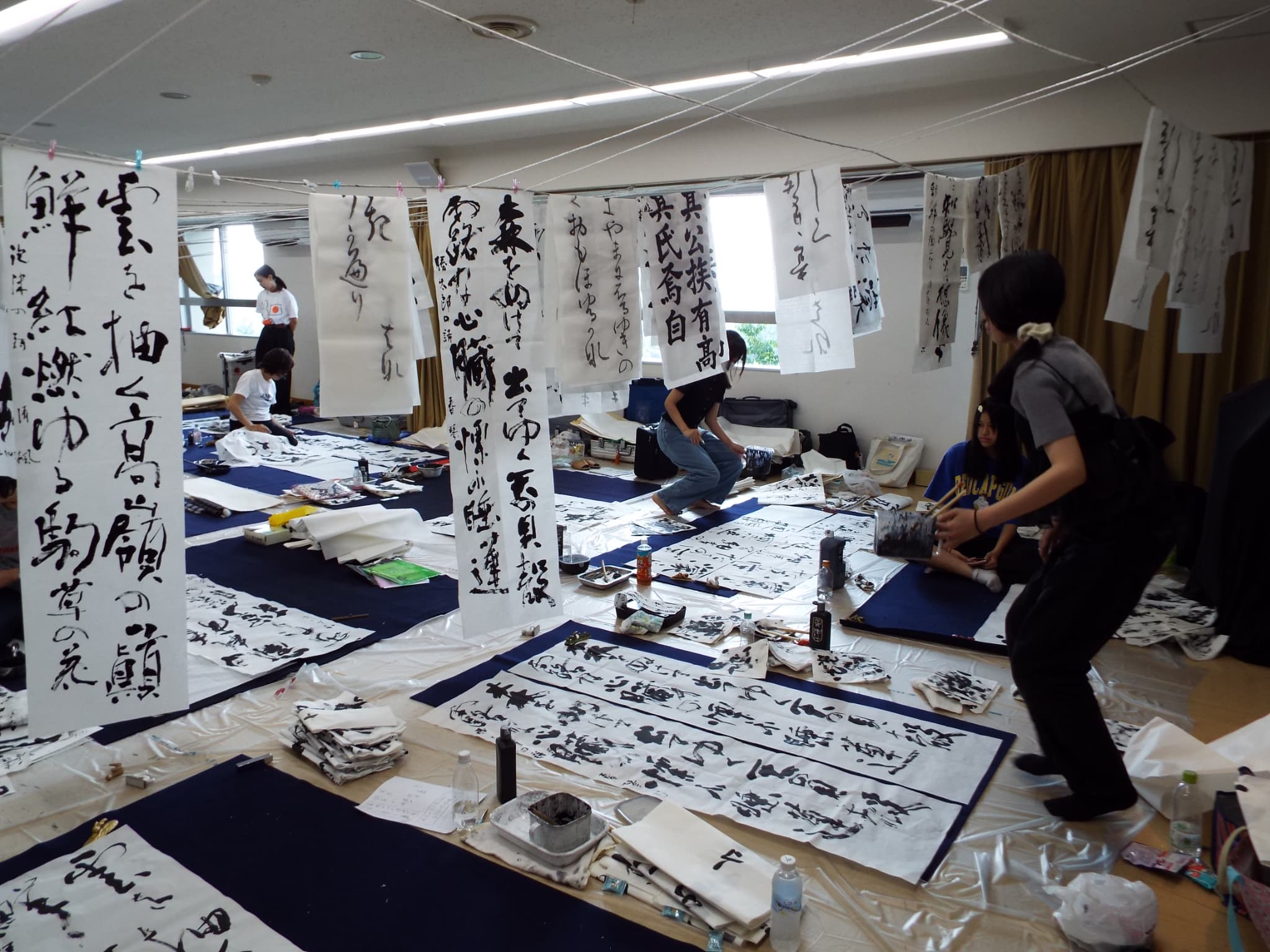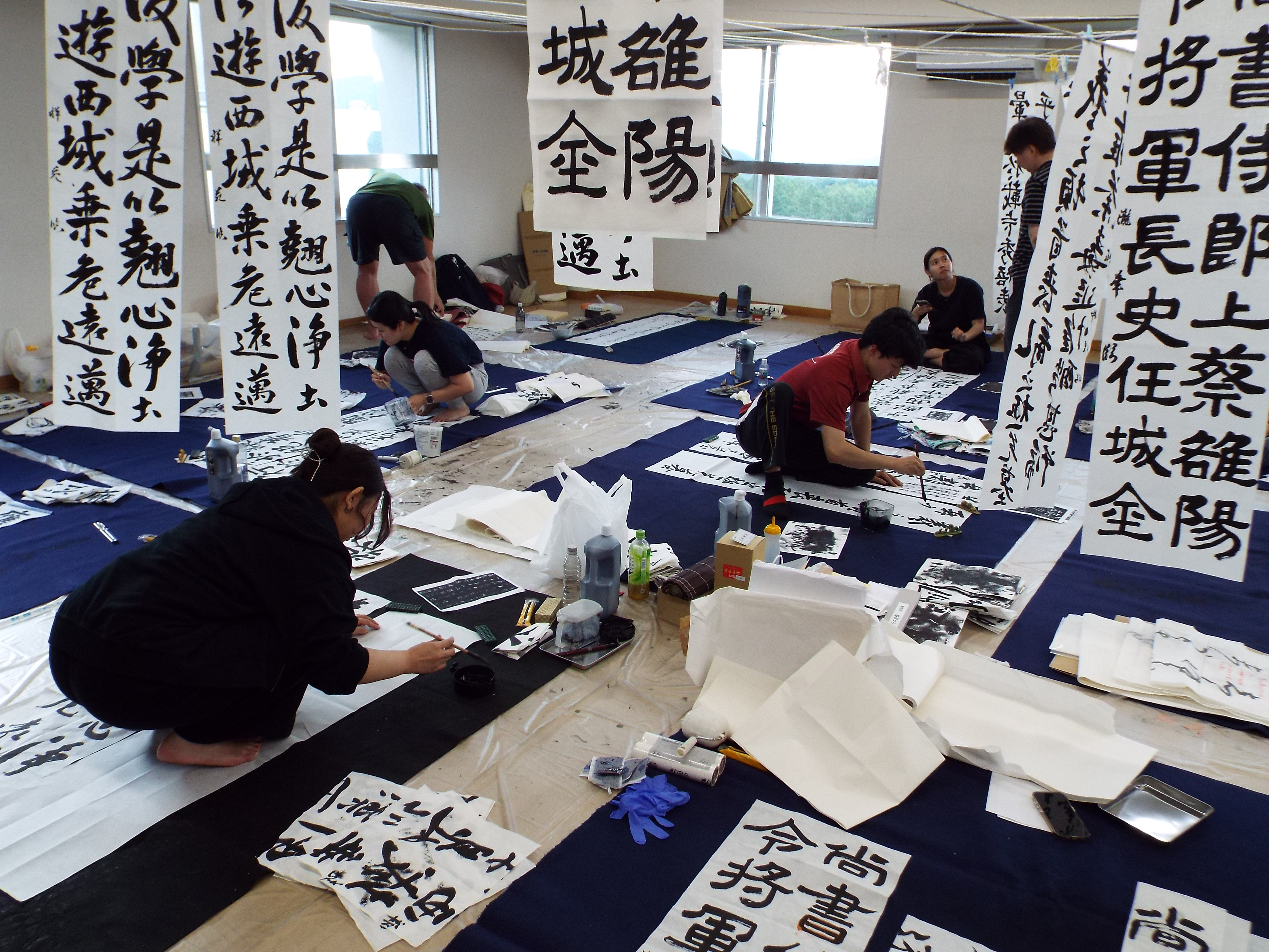学生部は全国学生書道展の近代詩に挑戦しています。