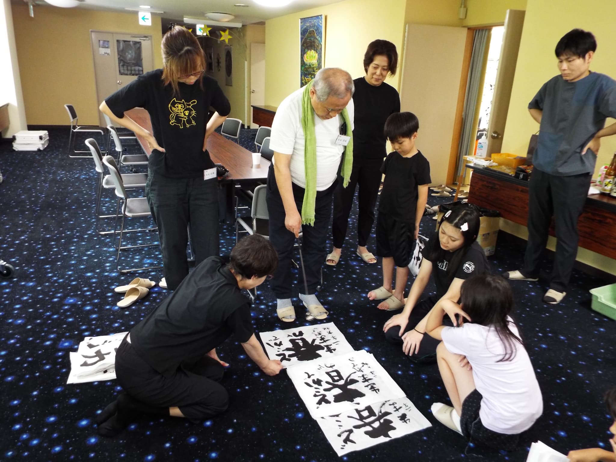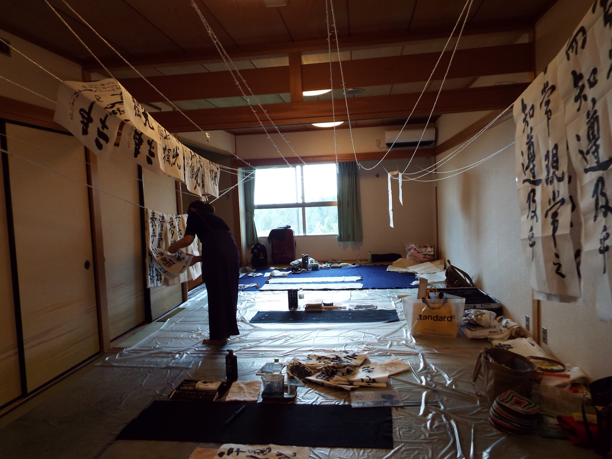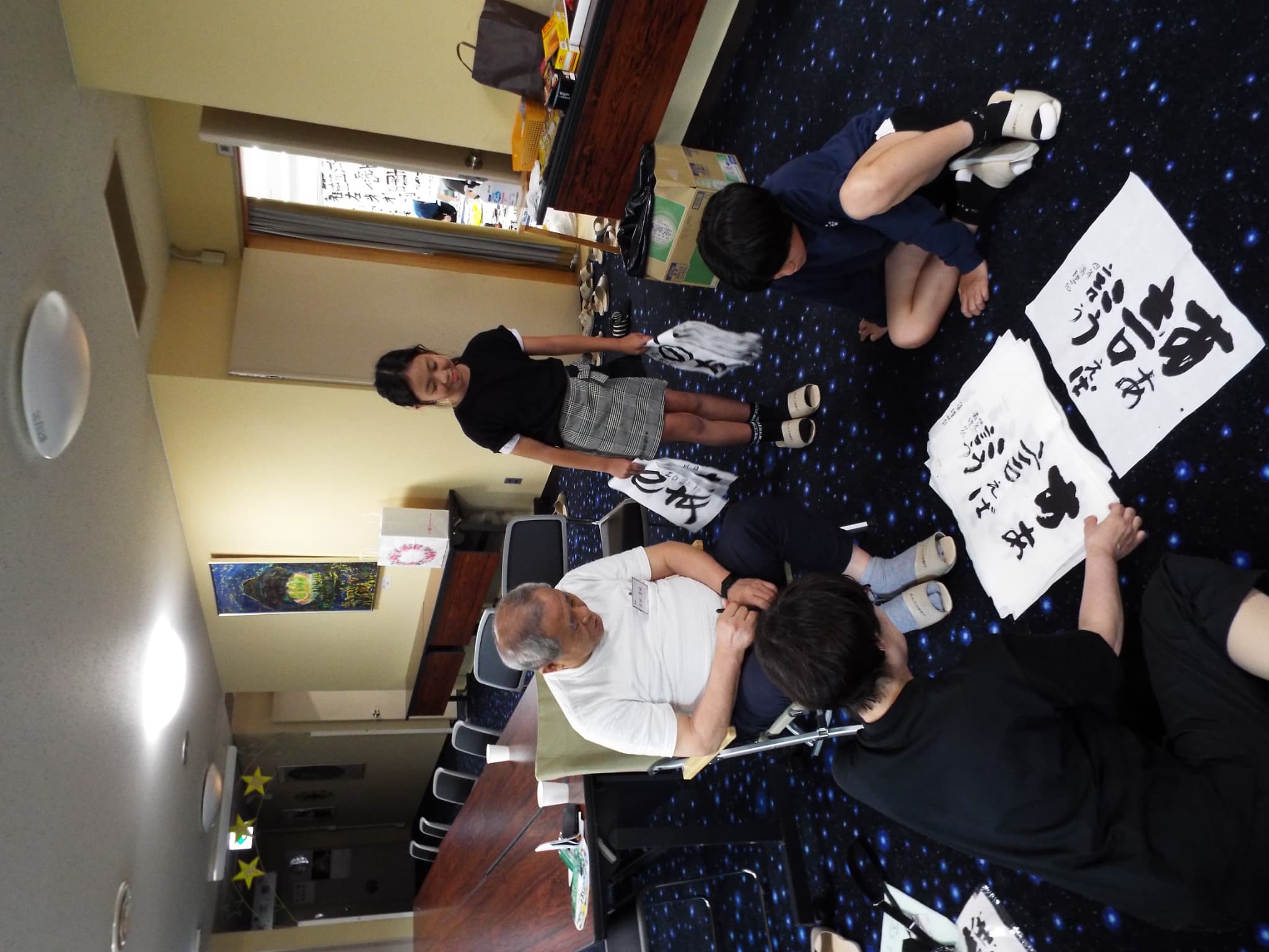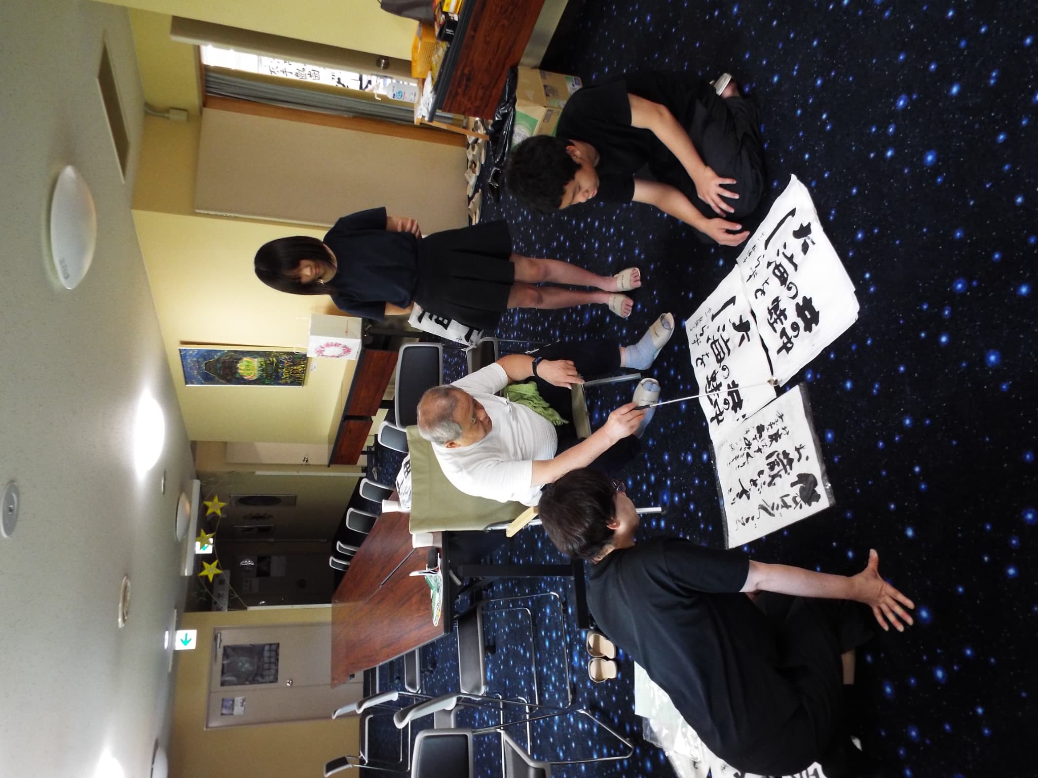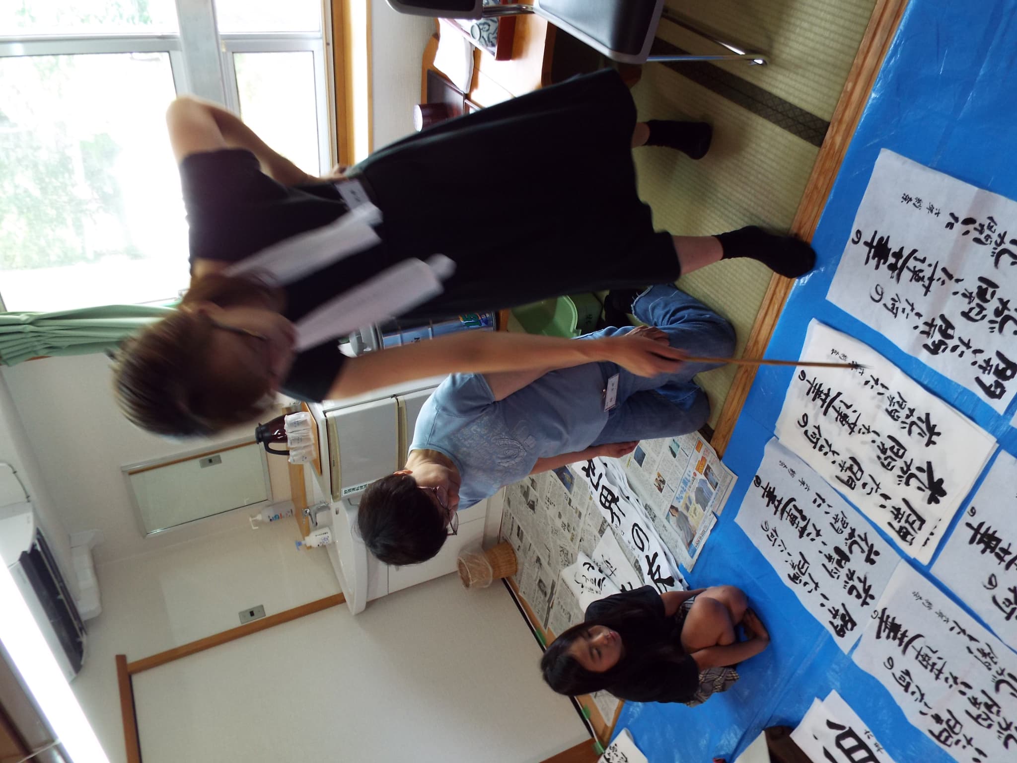 あらよりの様子。一日頑張って練習した作品を先生に見ていただいています。