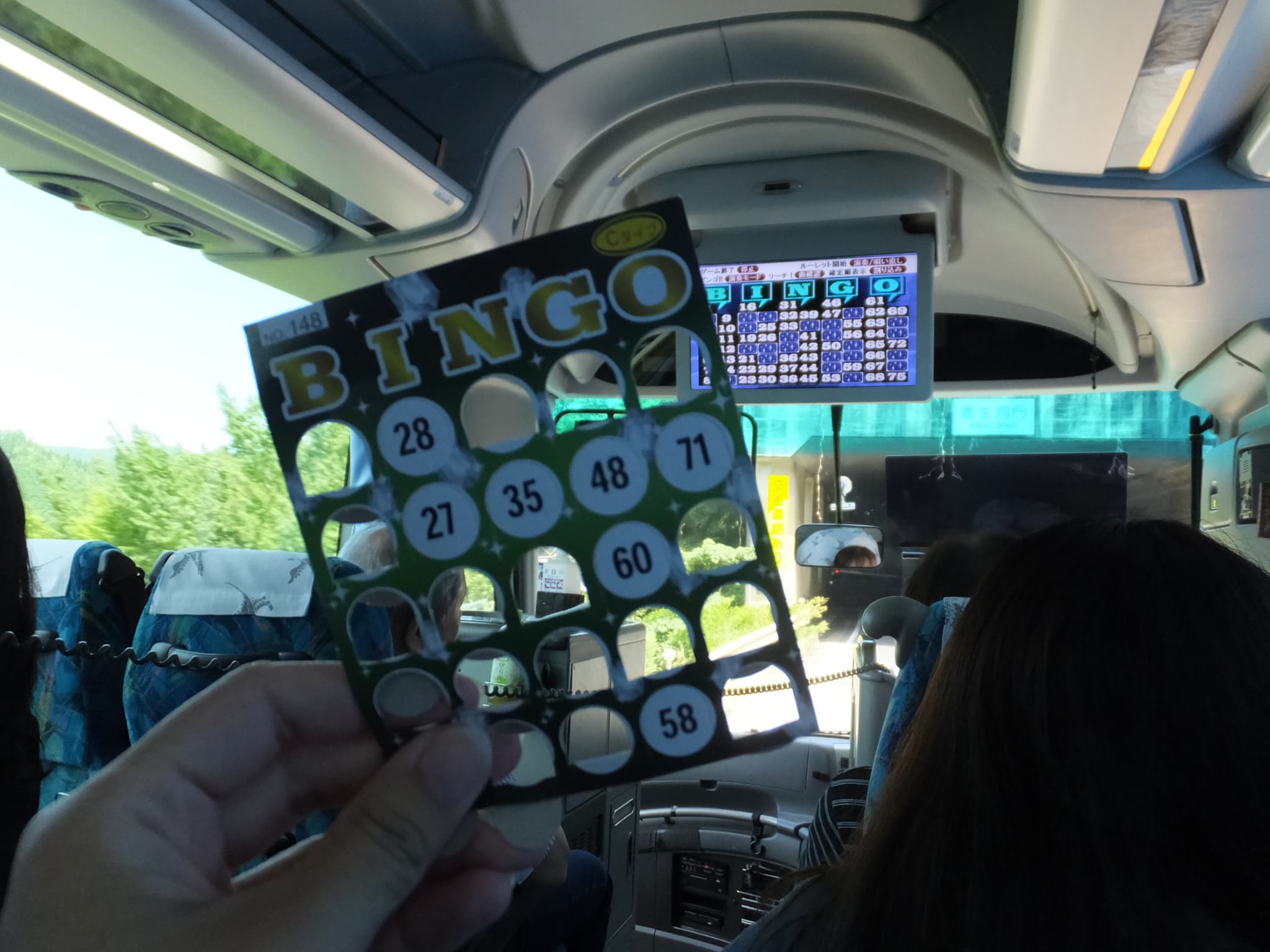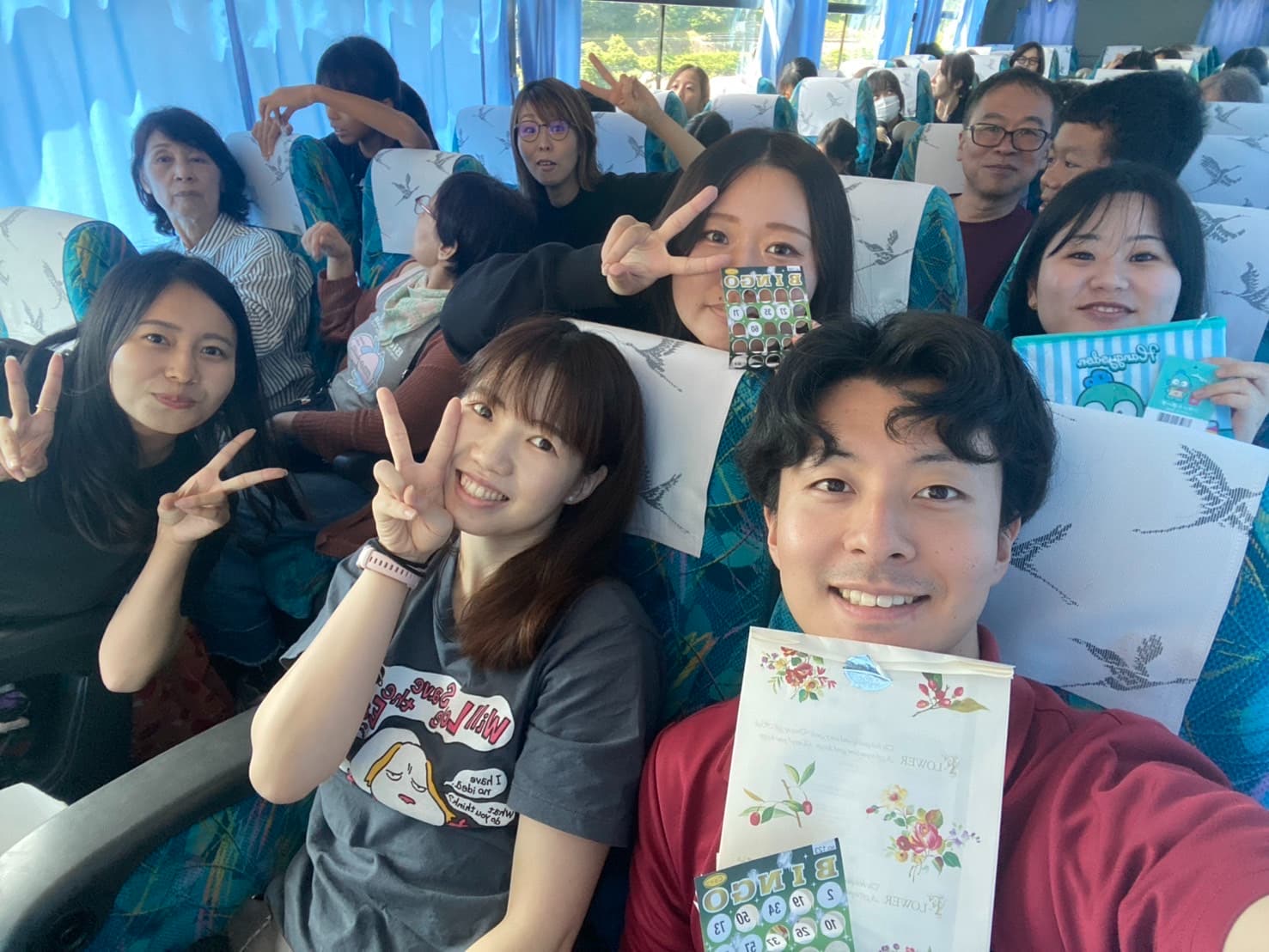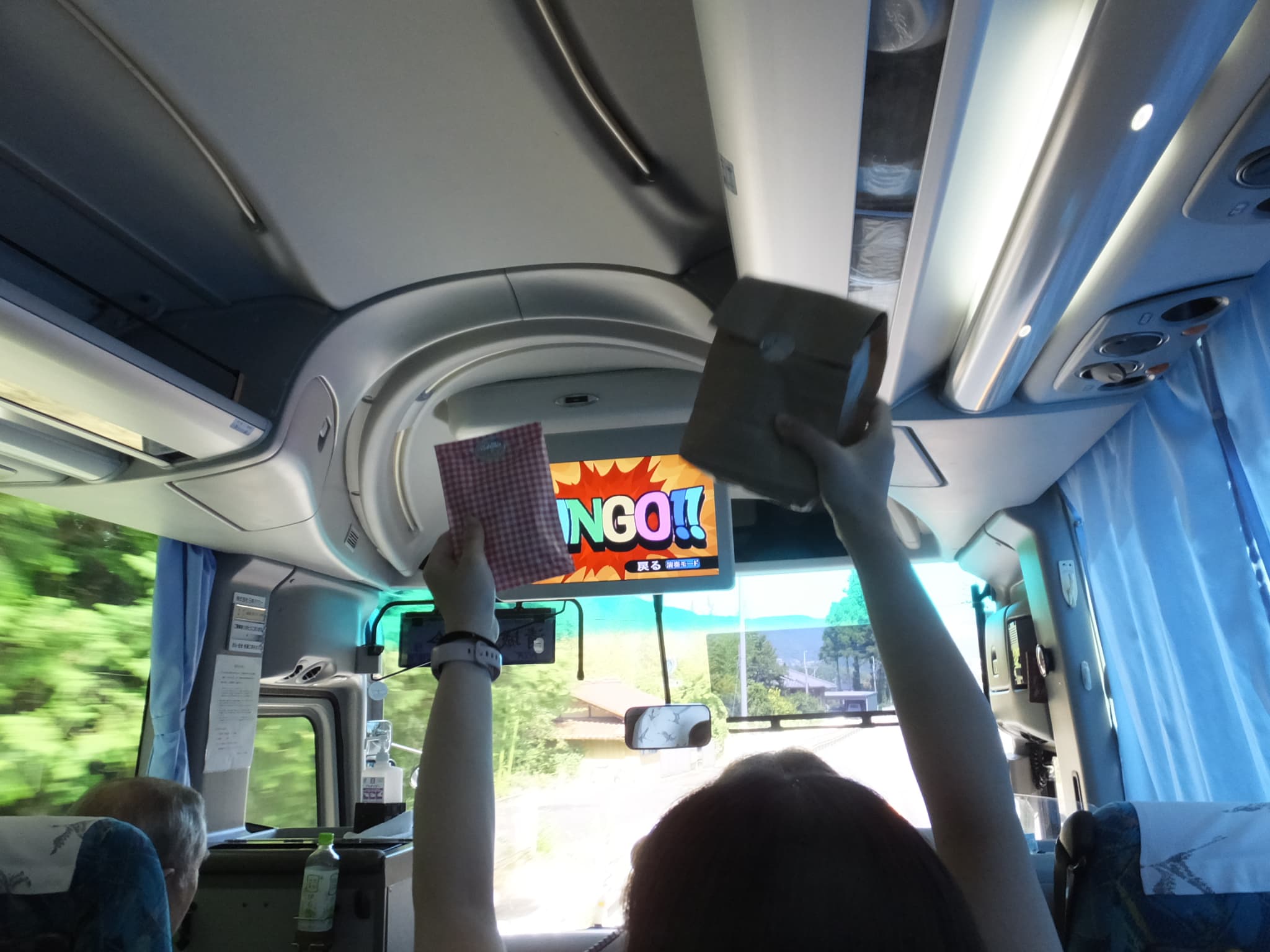 行きのバスの中ではビンゴ大会、じゃんけん大会を行いました!