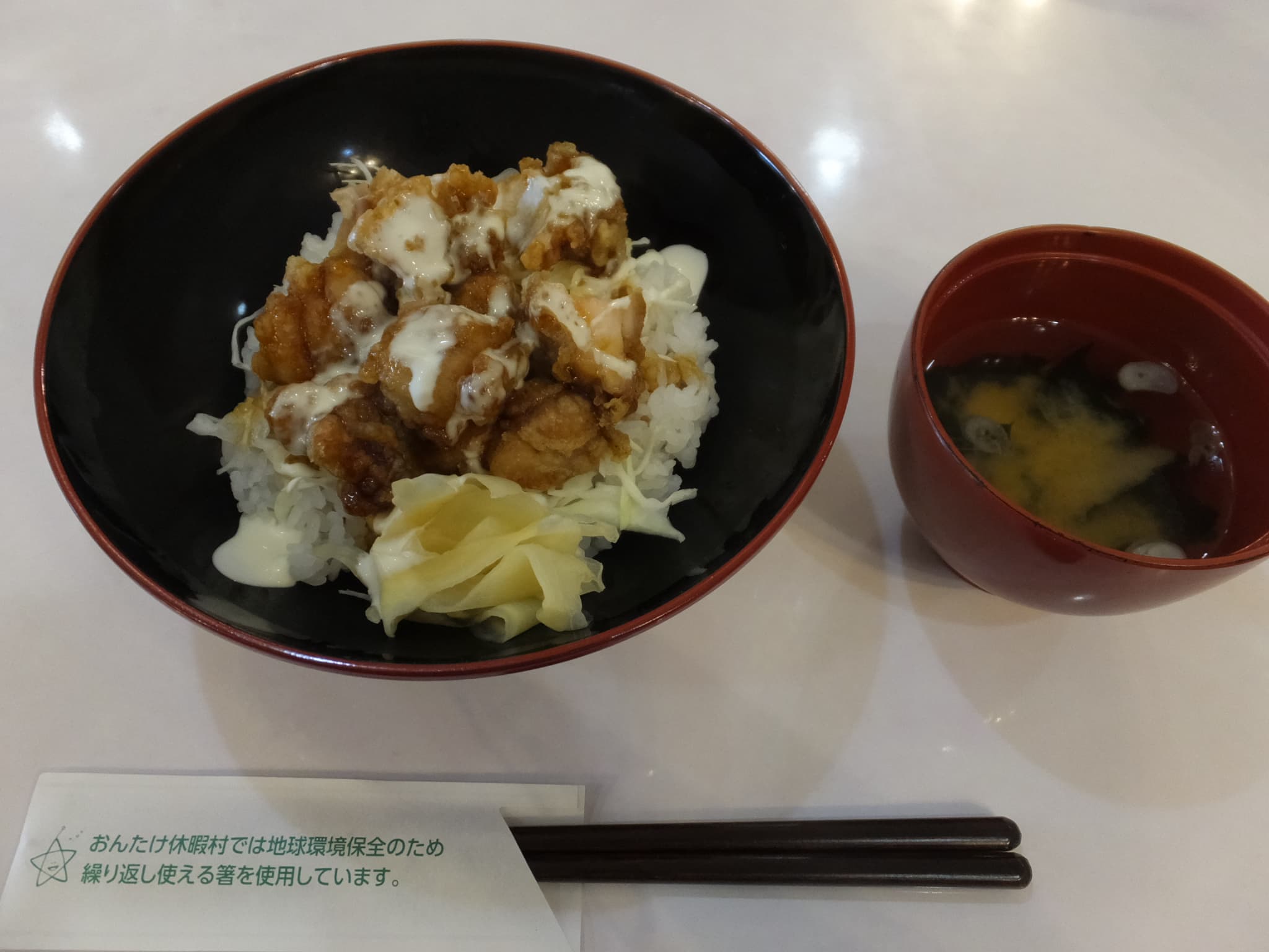 会場に着いたらまず、お昼ご飯です。一日目のお昼は唐揚げ丼でした。