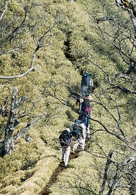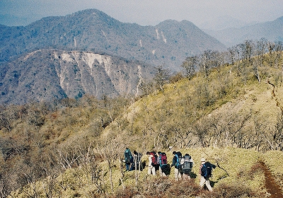 | 蛭ヶ岳(遠景)に向かう | 蛭ヶ岳に向かうパーティ | |