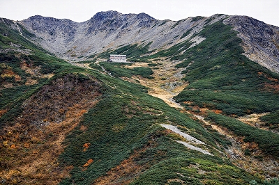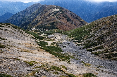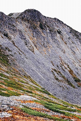 | 仙丈ヶ岳山頂の草紅葉 | 小仙丈尾根から仙丈ヶ岳を振り返る | |