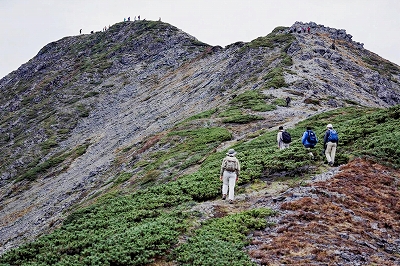| 仙丈ヶ岳山頂直下を登る | 仙丈ヶ岳山頂 | |