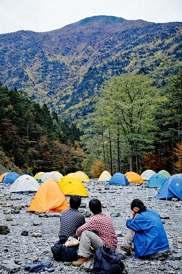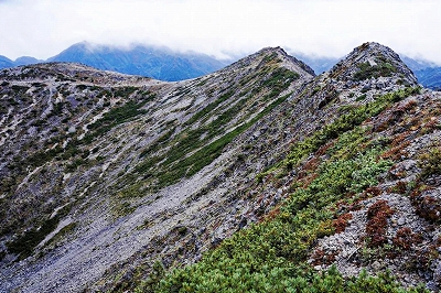 | 北沢長衛小屋幕営地から小仙丈尾根を仰ぐ | ||