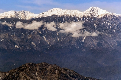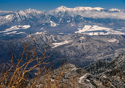 | 金峰山山頂から白峰三山 (左から、農鳥岳、間ノ岳、北岳) |