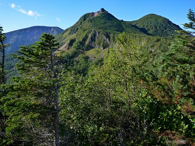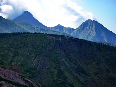 | ニュウの頂にて | 硫黄岳(左)、東天狗岳(中央)、西天狗岳(右)を望む | |