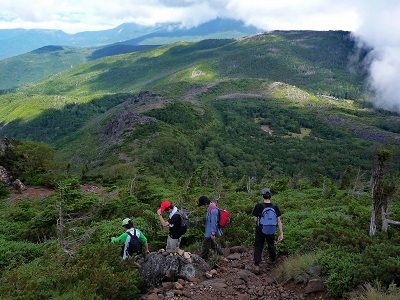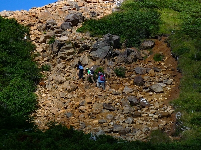 | 東天狗岳から天狗ノ奥庭に向かって下る | 白駒池池畔にて |