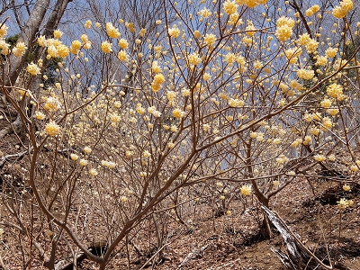 満開のミツマタの中を下る