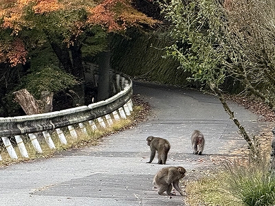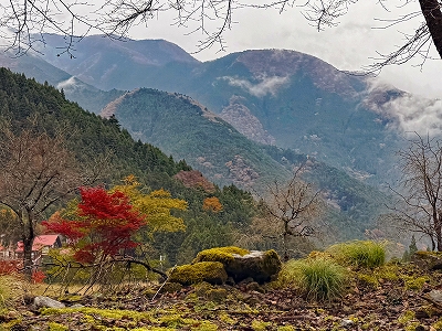 | 野 猿 (栃寄集落への登りで) | 川苔山(左)と本仁田山(右) | ||
