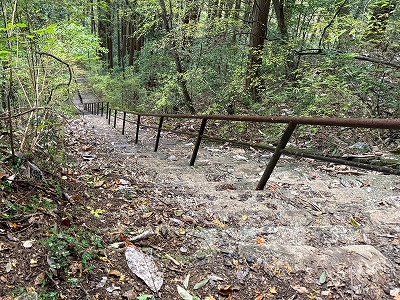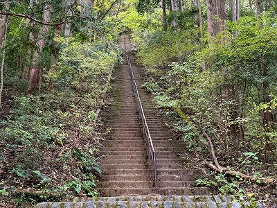 | 愛宕神社の石段を見下ろす | 愛宕神社の石段を振り返る | ||