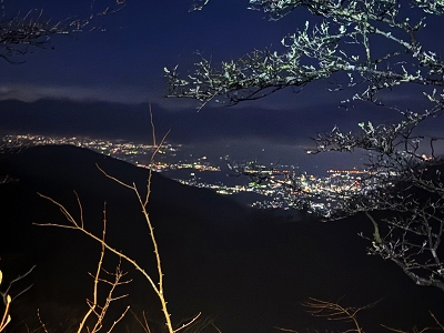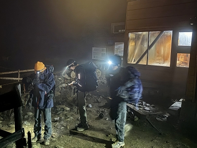 | 塔ノ岳から見た夜景 | 日の出前に出発準備 | ||