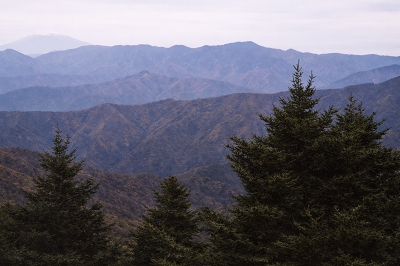 | 雲取山山頂から大菩薩山塊 | 雲取山山頂から南東を望む ――重畳する山並み | |