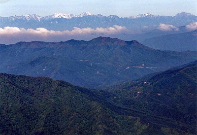 (左から、農鳥岳、間ノ岳、北岳、鳳凰三山、仙丈ヶ岳、甲斐駒ヶ岳)