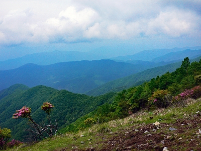 幾分早めにキャンプ場を出たため、体操はバス停で行った。6:25のバスは日帰りには早すぎるのか、乗客は学院のワンゲル部とキャンプ場にいた大学生だけだった。それはともかく、東日原へバスで行き、登り始めた。